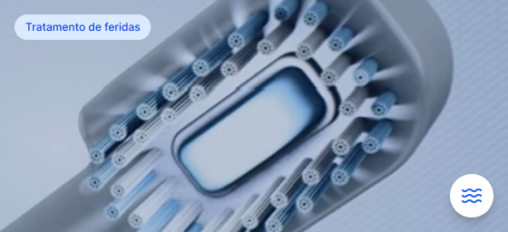 O Curason combina abrasão mecânica e microlimpeza por ultrassom para remover biofilme de forma segura e eficaz. Três mecanismos de ação — macroabrasão, microabrasão e ultrassom — atuam juntos para limpar a ferida com suavidade e profundidade ao mesmo tempo.